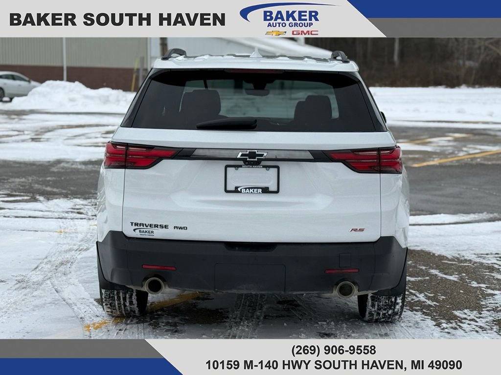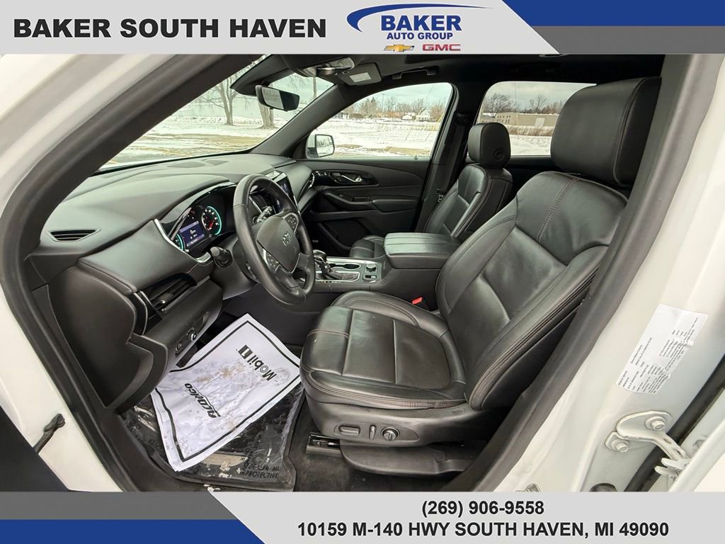 New Price! White 2022 Chevrolet Traverse RS AWD 9-Speed Automatic 3.6L V6 SIDI VVT Traverse RS, 4D Sport Utility, 3.6L V6 SIDI VVT, AWD, 3rd row seats: split-bench, 8-Way Power Driver Seat Adjuster, Auto High-beam Headlights, Automatic temperature control, Bose Premium 10-Speaker Audio System Feature, Front Bucket Seats, Fully automatic headlights, Heated Driver & Front Passenger Seats, Heated Steering Wheel, Navigation System, Perforated Leather-Appointed Seat Trim, Power Liftgate, Premium audio system: Chevrolet Infotainment 3 Plus, Steering wheel mounted audio controls.