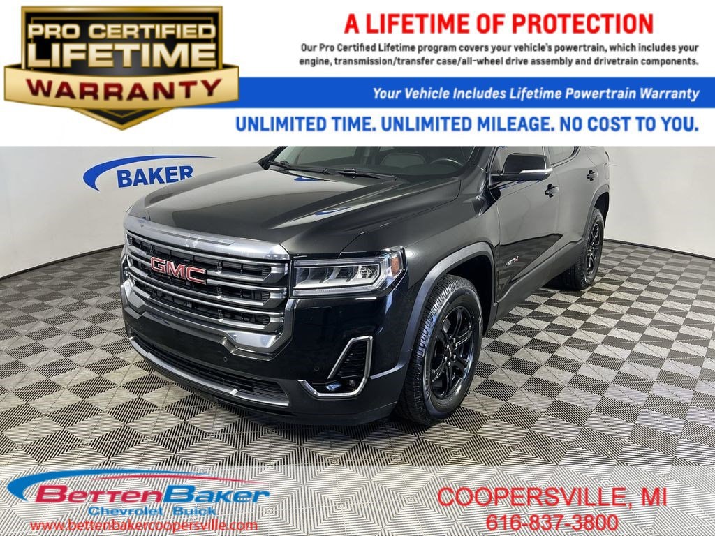 New Price! Certified. Ebony Twilight Metallic 2021 GMC Acadia AT4 AWD 9-Speed Automatic 3.6L V6 SIDI Non-Smoker, LOCAL trade in!, CAR BRAVO CERTIFIED - 12 month/12,000 mile Limited Bumper to Bumper Warranty!, Acadia AT4, 3.6L V6 SIDI, 9-Speed Automatic, AWD, Ebony Twilight Metallic, 170 Amp Alternator, 1st & 2nd Row All-Weather Floor Liner (LPO), 3rd Row All-Weather Floor Liner (LPO), 4-Way Manual Passenger Seat Adjuster, 6-Passenger (2-2-2 Seating Configuration), 8-Way Power Driver Seat Adjuster, 8-Way Power Passenger Seat Adjuster, Apple CarPlay/Android Auto, Automatic temperature control, Black Center Caps w/Red GMC Logo (LPO), Bose Premium 8-Speaker Audio System Feature, Dual SkyScape 2-Panel Power Sunroof, Floor Liner Package (LPO), Front dual zone A/C, HD Radio, Heated front seats, Heavy-Duty Cooling System, Hitch Guidance w/Hitch View, Navigation System, Power Driver Lumbar Control Seat Adjuster, Power driver seat, Power Liftgate, Preferred Equipment Group 4SB, Radio: AM/FM 8 Diagonal Multi-Touch Navigation, Trailering Assist Guidelines, Trailering Package, Wheels: 17 Gloss Black Aluminum, Wireless Apple CarPlay/Wireless Android Auto.
